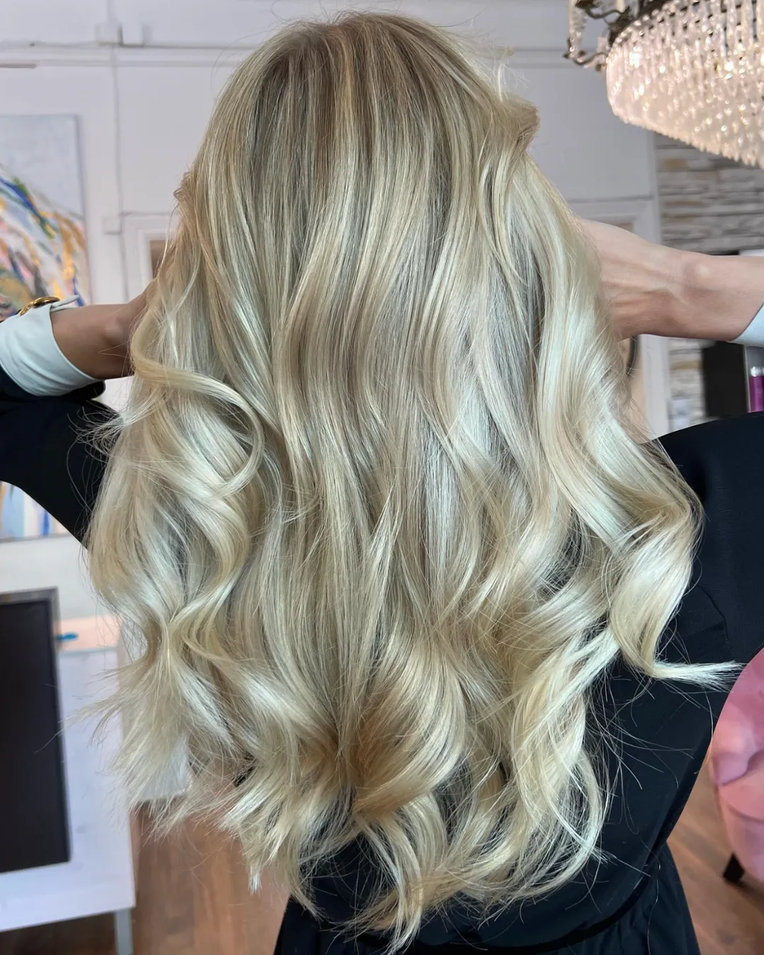 Därefter följer folieslingor, där vi applicerar slingorna för att skapa dimension och lyster i ditt hår. Vi arbetar med precision för att ge dig ett naturligt och strålande resultat.