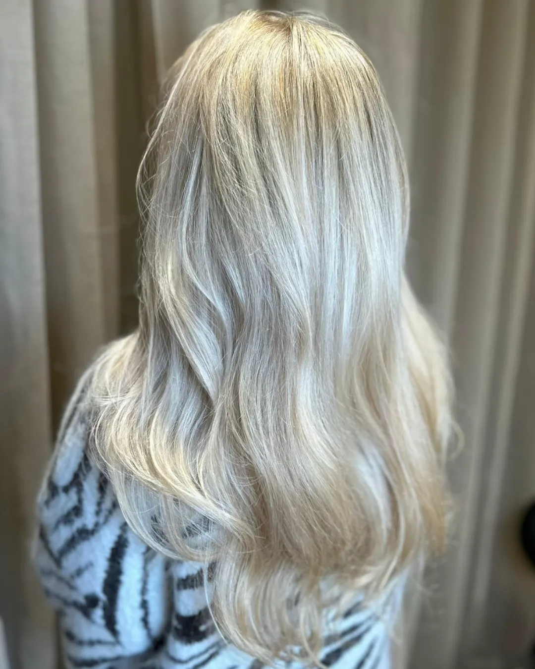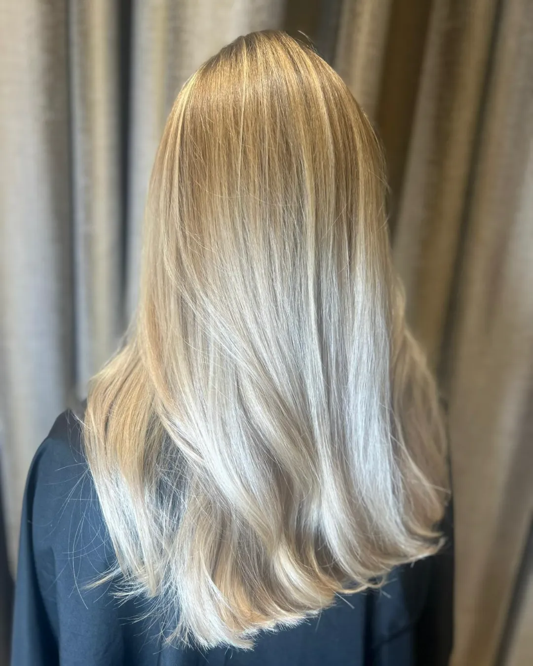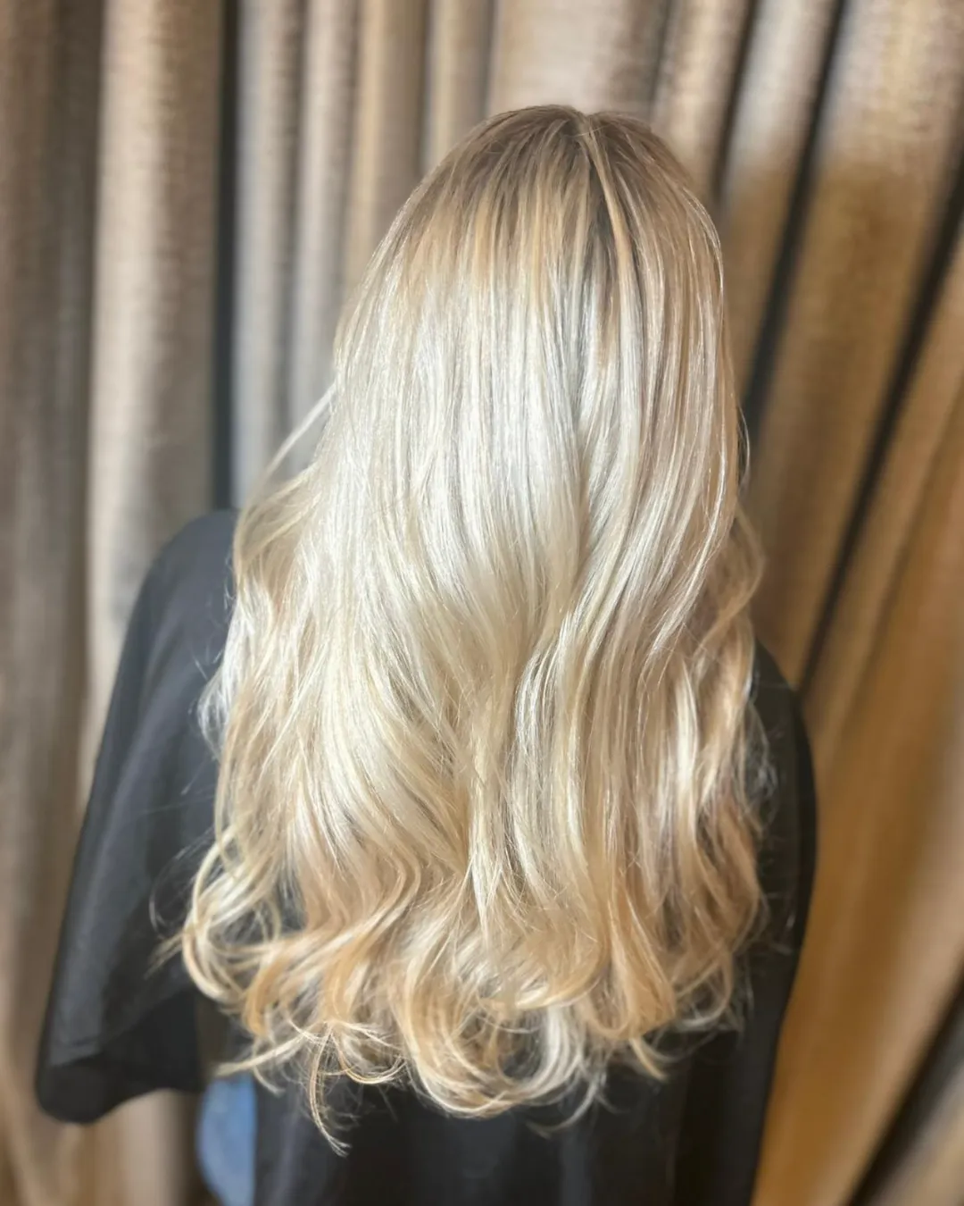 När håret är rent, går vi vidare till att nyansera slingorna. Detta steg hjälper till att neutralisera oönskade toner och framhäva de nyanser som passar just dig. Sedan torkar vi ditt hår försiktigt för att förbereda det inför nästa steg i behandlingen.